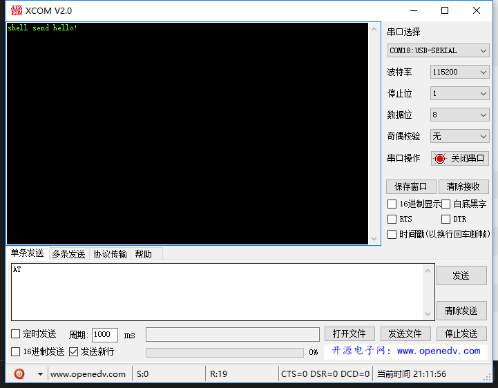 sh rfcomm connect hci0 98:D3:37:91:00:DD & #放入后台执行出现一下内容代表建立rfcomm成功。sh Connected /dev/rfcomm0 to 98:D3:37:91:00:DD on channel 1现在我们可以通过对/dev/rfcomm0操作来发送数据,比如:sh echo "shell send hello!" > /dev/rfcomm0可以看到蓝牙接收到这条数据了: