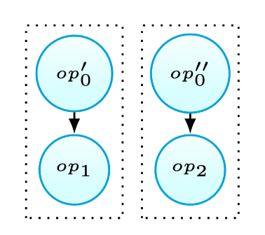 考虑如图6(a)所示的场景,当\(op_0\)定义值后被\(op_1\)和\(op_2\)使用.使用\(op’_0\)代表\(op_0\)被\(op_1\)使用的子集,以及\(op’’_0\)表示\(op_0\)写入\(op_2\)读取的值的子集.现有的启发式方法57,58,59会因为可能的冗余计算而不fusion第三种情况.本文观察到在这种情况下有时仍然可以进行fusion.使用tiling后fusion的策略,当\(op’_0\)和\(op’’_0\)不存在相交的情况时(如图6(b)所示),还是可以进行fusion,因为此时不会产生冗余计算. 当\(op’_0\)和\(op’’_0\)交集非空时,本文方法不允许fusion,因为这将产生冗余计算.总之,这种融合策略永远不会引入代码的冗余.