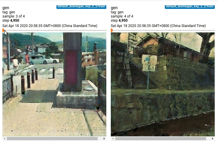 经过一系列的实验,可以发现生成器损失每次都先下降再上升。我觉得下降的那段时期应该是学习到了动画的风格,而后可能是由于color loss太强或者是判别器太强,生成器和判别器没有做到对抗的过程,生成的图像就越来越真实了,但我实验了很多次也没有找到平衡点。。。