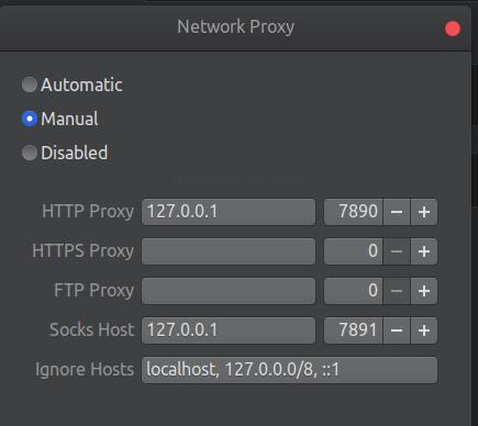 http代理与socks代理,ip设置为127.0.0.1,端口号参考config.yaml中的port和socks-port,最后ignoreed host设置为localhost, 127.0.0.0/8, ::1即可。 - 应该可以正常访问外网了。