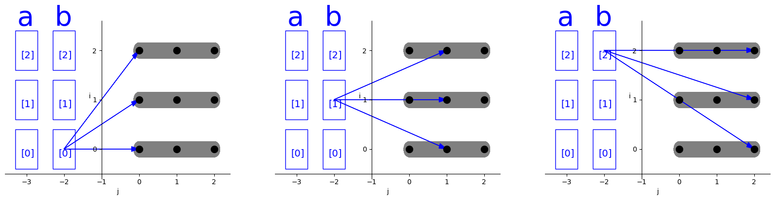 当distribution notation为\(\mathcal{a}_{x} \mapsto_{x} \mathcal{M}\),\(\mathcal{b}_{x} \mapsto_{x} \mathcal{M}\), 那么对应的分布式调度为distribute(i,io,ii,M), 经过调度后的迭代域如下: