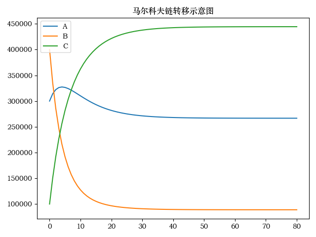 之前隐马尔科夫模型其实已经讲到了,但是那边讲的并不详细.书本上在这一章详细介绍了马尔科夫链.我这里也给出一个简单的例子,假设我们有三个岛屿,岛屿上的人口初始分布不同,有一个转移矩阵表示了每年三个岛屿人口迁移概率,经过数年迭代之后到达平稳分布,中间的状态称为燃烧期: \[ T=\begin{bmatrix} 0.9& 0.05& 0.05\\ 0.1& 0.8& 0.1\\ 0.04& 0.01& 0.95 \end{bmatrix} \]