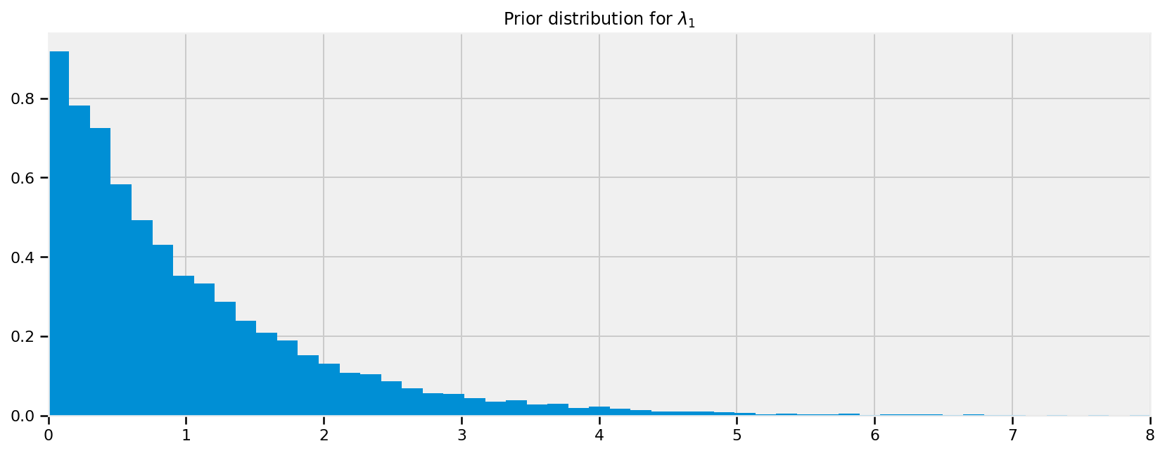 #type your code here.2 Try plotting\(\alpha\)samples versus\(\beta\)samples. Why might the resulting plot look like this?