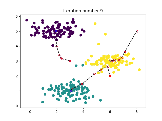 # Run K-Means algorithm. The 'true' at the end tells our function to plot