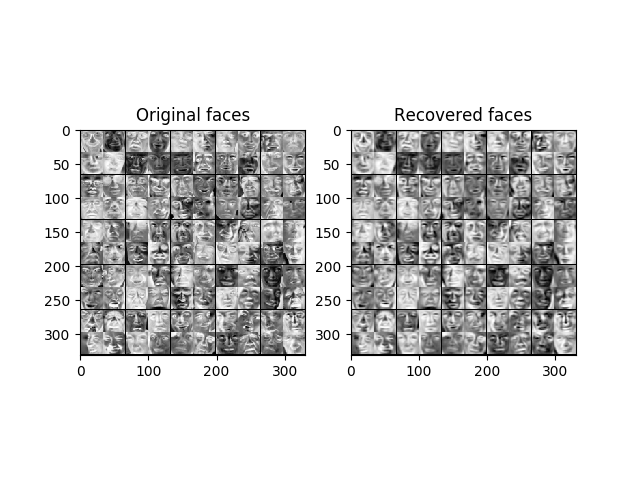 # X_rec = RECOVERDATA(Z, U, K) recovers an approximation the